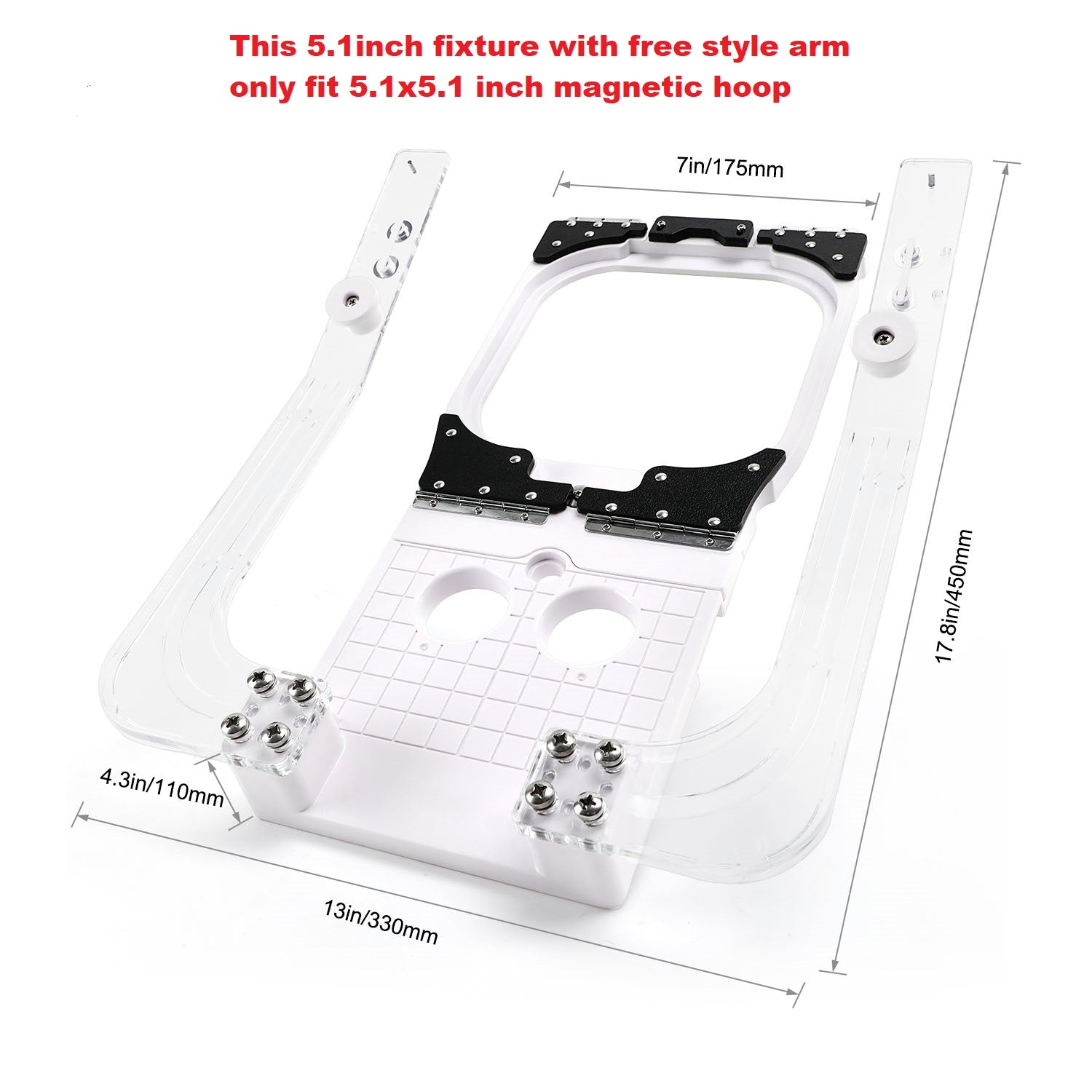 1. These fixtures must be used with embroidery Hooping Station Kit and 5.1"x5.1" or 6.9"x6.9" Sewtalent magnetic embroidery hoops.